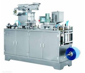 本泡罩包装机在对多种规格尺寸的胶囊、糖衣片、素片等药品的泡罩式铝塑复合密封包装时,首先将塑料薄膜经加热装置加热软化,在本颗粒药品包装机辊筒式成型模辊上用真空负压吸出泡罩,充填装置将药品充填入泡罩内,然后经辊筒式热封合装置,在合适的温度及压力下将单面涂有粘合剂的覆盖膜封合在带泡罩材料表面,并将泡罩包装机被包装物密封在泡罩内,再经打字、压印装置打印上批号及压出折断线,最后将其冲切成规定尺寸的板块。